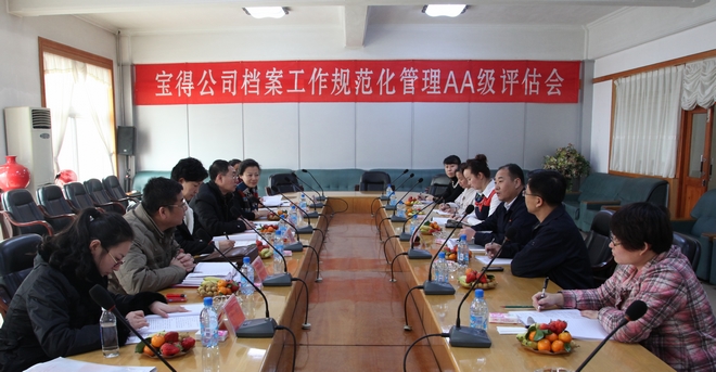 1月31日,由遼寧省檔案局業(yè)務指導處歐平處長、副處長葛仁軍、科員于佳,市檔案局趙壽安副局長、王一鳴處長、楊琳副處長組成的評估組,到公司進行檔案工作規(guī)范化管理“AA”級評估,經(jīng)過認真細致的檢查,一致通過了公司檔案工作規(guī)范化管理“AA”級評估。