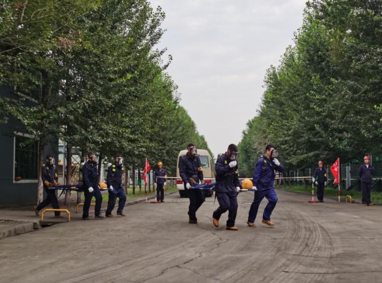 “報(bào)告馬廠長(zhǎng):我是當(dāng)班維護(hù)班長(zhǎng)曹雷,9點(diǎn)35分左右班內(nèi)三名員工在煤氣閥組平臺(tái)巡檢過程中發(fā)生煤氣中毒事故,請(qǐng)求立即支援”……;“請(qǐng)搶險(xiǎn)救援組、安全警戒組、醫(yī)療救護(hù)組…立即趕赴事故現(xiàn)場(chǎng)集結(jié)”;“報(bào)告總指揮:搶險(xiǎn)救援組10人到達(dá)現(xiàn)場(chǎng),6套呼吸器及3副擔(dān)架救援裝備完好,可正常使用”……;“各救援小組按預(yù)案規(guī)定程序及商定的實(shí)施方案,立即展開救援行動(dòng)”……;“報(bào)告總指揮:三名傷者已成功救出,兩人中毒較重,一人較輕,……”;“報(bào)告總指揮:煤氣泄漏部位搶修完畢,已無泄漏現(xiàn)象,設(shè)備可正常運(yùn)行”……。隨著一條條救援指令的下達(dá),現(xiàn)場(chǎng)警戒、現(xiàn)場(chǎng)救援、傷員急救、設(shè)備搶修、現(xiàn)場(chǎng)清理及組織生產(chǎn)恢復(fù)等過程緊張、有序地完成,實(shí)戰(zhàn)演練圓滿結(jié)束。